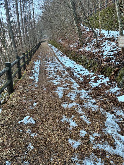 所々の日陰部分や、沢沿いはまだ積雪しています。