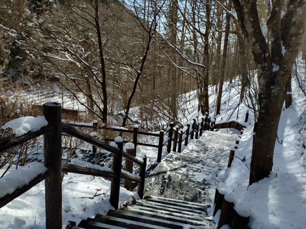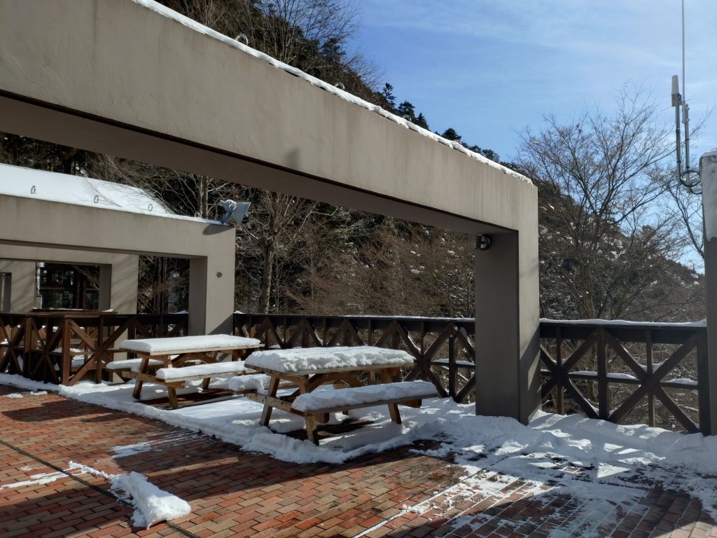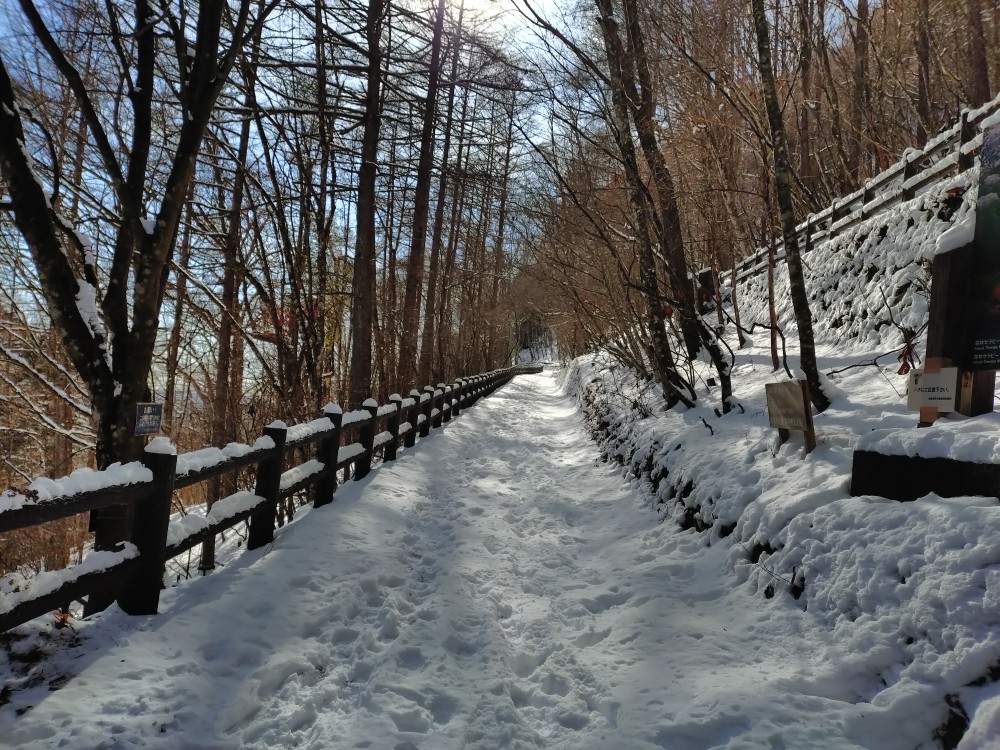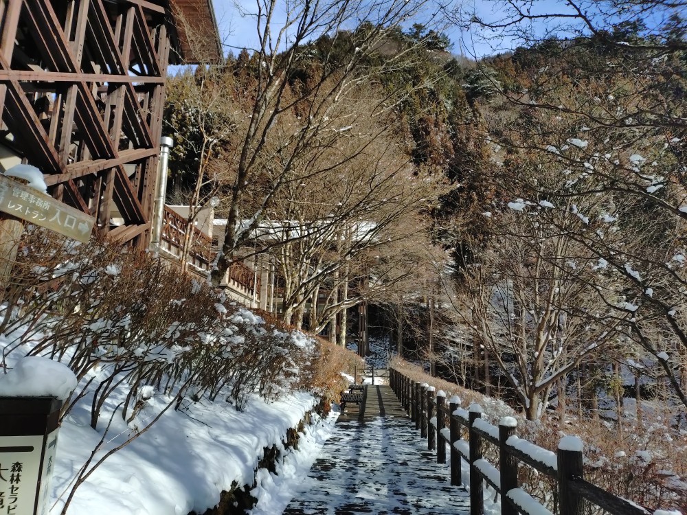 登山をされる方は、アイゼンの装着をお願いいたします。お車で都道を走行される際は、冬用タイヤの装着をお願いいたします。