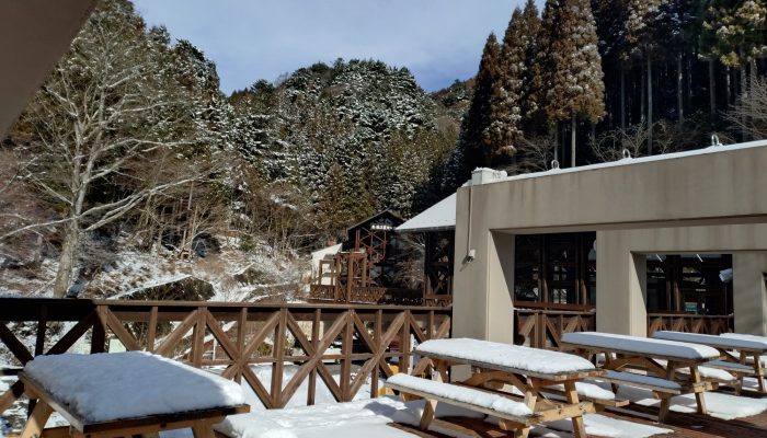 2月8日の積雪による、2月10日現在の森林館周辺の様子です。2月10日午前9時現在の気温はー2℃、積雪は約10センチです。